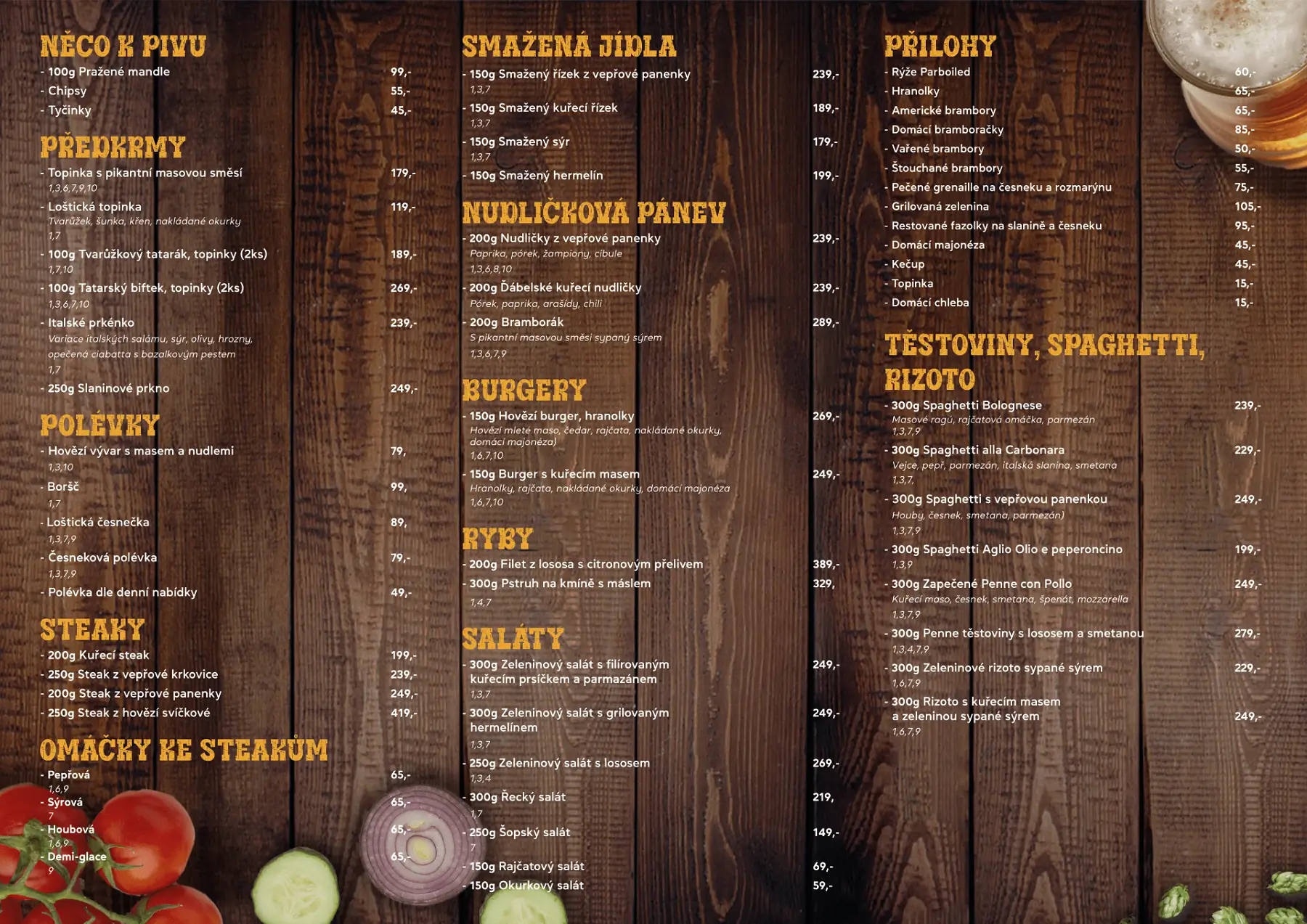 Kromě pizzy nabízíme také výborné těstoviny, čerstvé saláty, steaky, ryby, saláty a moučníky, ale také něco z tradiční české kuchyně.