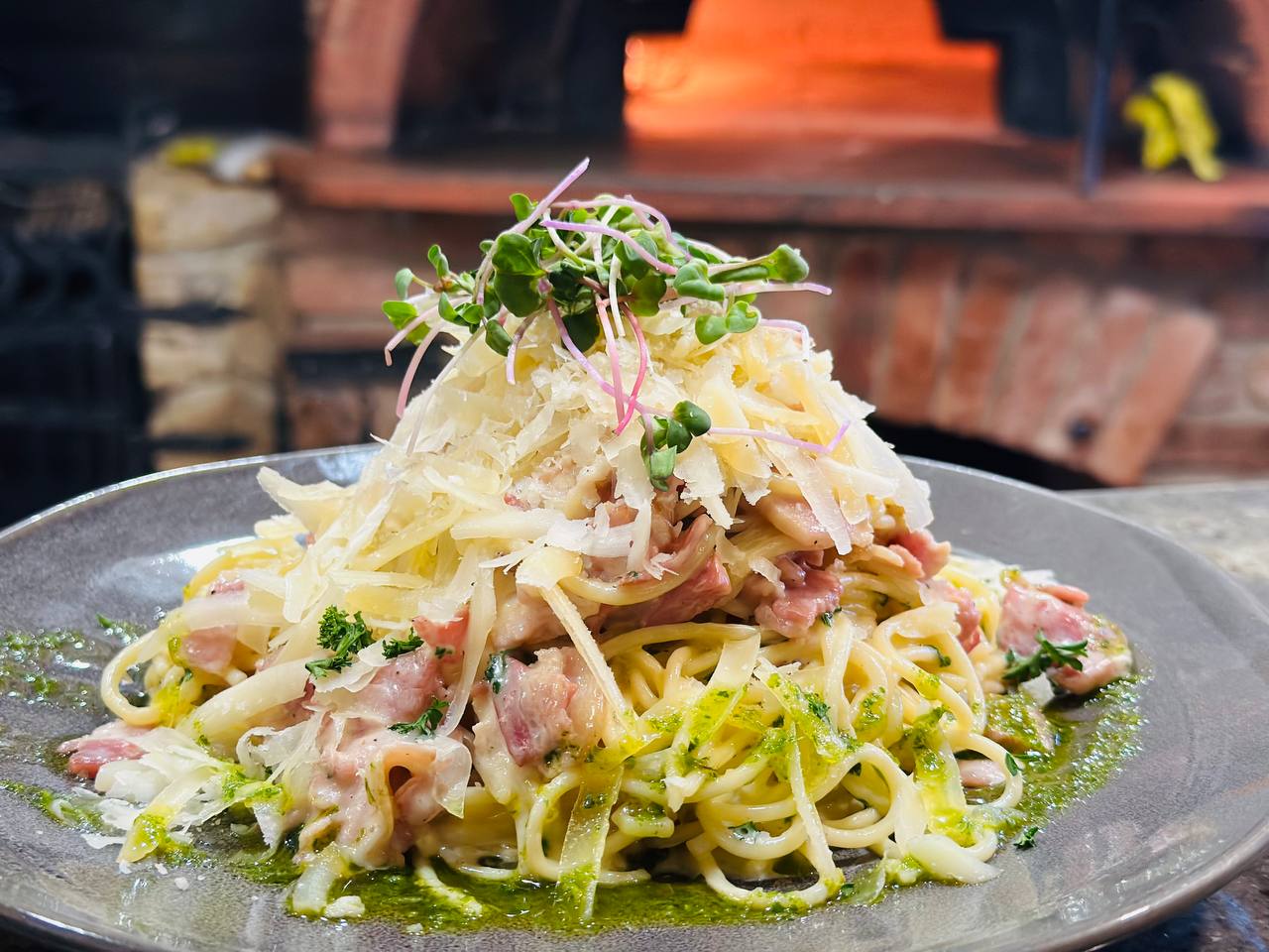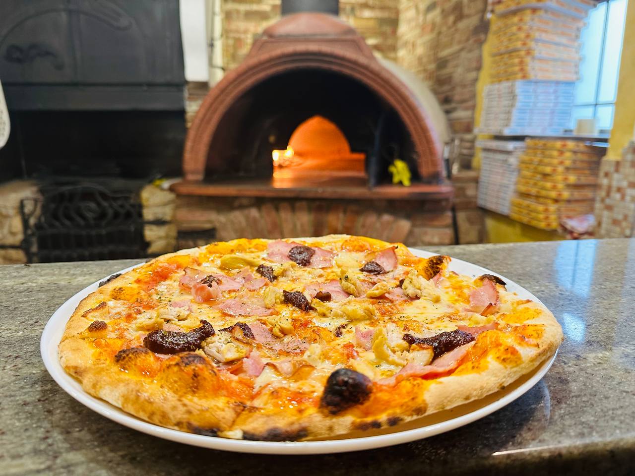 Srdcem naší kuchyně je dřevem vytápěná kamenná pec na pizzu. Připravujeme v ní pizzu, zapékané pokrmy a bruschetty z domácího chleba. Celý proces přípravy můžete sledovat na vlastní oči, protože pec je umístěna v přední části restaurace, kde naši kuchaři předvádějí své umění.
